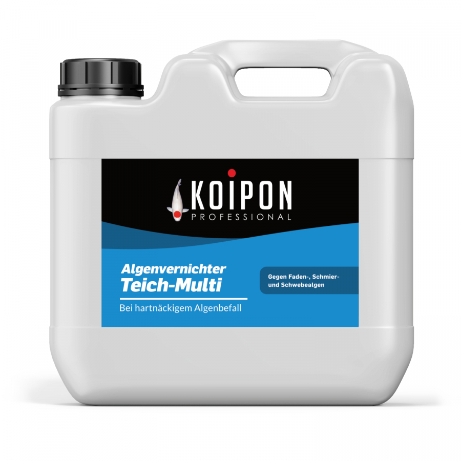 KOIPON Algenvernichter Teich-Multi wirkt in Gartenteichen gegen Faden-, Schwebe- und Schmieralgen, bei hartnäckigem Algenbefall, zur Vorbeugung und Kontrolle des Algenwachstums. Der Biozidwirkstoff Monolinuron hemmt die Fähigkeit der Alge zur Photosynthese. Dadurch wird die Entwicklung und Vermehrung der Fadenalgen behindert und die Alge stirbt ab. Langfristig werden auch Schwebealgen und Schmieralgen im Gartenteich bekämpft.
