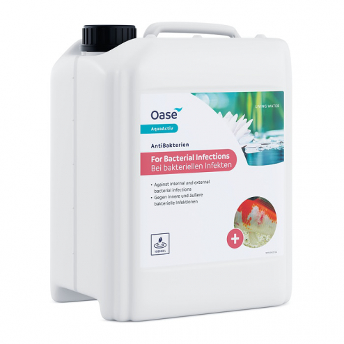 Fischmedizin gegen bakterielle Infektionen - AquaActiv AntiBakterien ist geeignet für Teichgrößen bis 10 m³. Mit 500 ml Inhalt ist dieses Mittel perfekt einsetzbar bei inneren und äußeren bakteriellen Infektionen, wie z. B. Bauchwassersucht, Maulfäule, Flossenfäule, Lochsyndrom, Streptokokken oder entzündeten Verletzungen. Die ideale Ergänzung dazu bietet das AquaActiv QuickFit.
