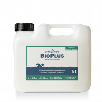 swimcare® BioPlus ist ein 100% biologisches Produkt zur Verbesserung der Wasserqualität in Ihrem Schwimmteich. Die probiotischen Milchsäurebakterien vernichten 95% der krankheitserregenden Bakterien im Teich und reduzieren das Algenwachstum. BioPlus fördert den Aufbau eines gesunden Teichmilieus. Die hochwirksamen Bakterien fördern den Abbau von Abfallstoffen und sorgen daher für einen höheren Sauerstoffgehalt. Es ist reich an Enzymen, Mineralien, Spurenelementen, Vitaminen und essentiellen Aminosäuren. In einem Milliliter BioPlus leben ca. 3,5 Millionen vermehrungsfähige Milchsäurebakterien.