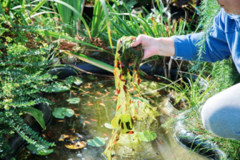 - Anwendung: Entfernen Sie sichtbare Algen regelmäßig mit einem Kescher oder einem Teichsauger.