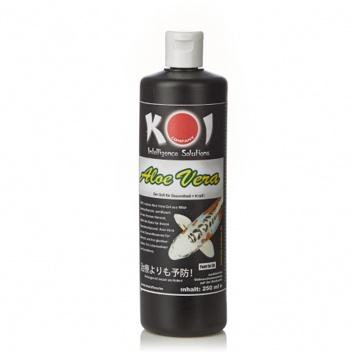 Aloe Vera-Gelcompound ist reich an Aminosäuren, Proteinen, Enzymen, Mineralien, Spurenelementen, Fettsäuren und Vitaminen. Die ungesättigten Omega-3-Fettsäuren regen den Stoffwechsel an und vitalisieren den gesamten Organismus. Die Vitaminvielfalt ist außergewöhnlich. Neben den wichtigsten Vitaminen A/B1/B2/B3/B6/B9/B12/C/E und Cholin, finden wir eine Reihe von Polysaccariden, die das so wichtige Immunsystem kräftig unterstützen und Selbstheilungskräfte mobilisieren. Aloe Vera ist ein Pflanzensaft und sehr gut verdaulich auch bei niedrigen Temperaturen. Wir haben unsere Koi bis zu Wassertemperaturen von 6° durchgefüttert mit Weizenkeimpellets sinkend, diese abwechselnd mit Aloe Vera, Fischöl und Cannabisöl präpariert und mit Spirulina, Blütenstaub oder Knoblauch-Ginseng wasserresistent versiegelt. Es gibt keine größere Freude als gesunde, vitale und bestens konditionierte Koi.