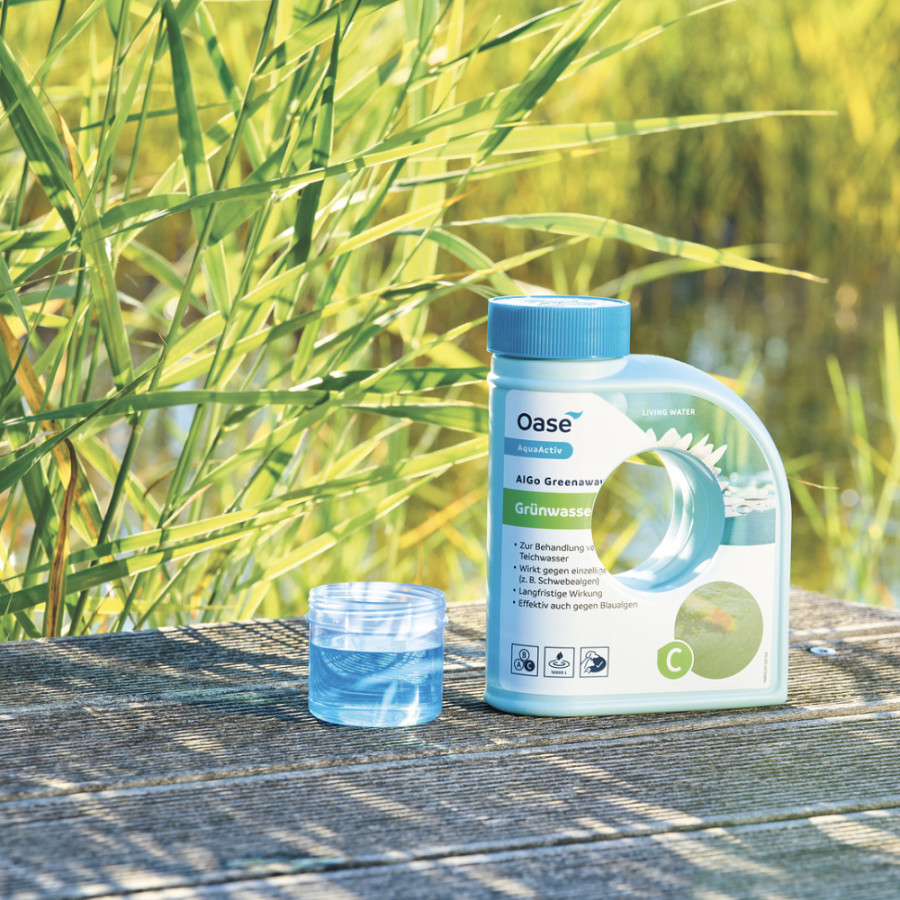 AlGo Greenaway macht grüne Teiche wieder klar. Der Spezialwirkstoff entfernt sicher Schwebealgen, die Ursache von grünlich trübem Wasser und wirkt einer Neuveralgung vor. Biozidprodukte vorsichtig verwenden. Vor Gebrauch stets Etikett und Produktinformationen lesen! Erhältliche Größen: 500 ml und 5 l Ausreichend für 10 m3 und 100 m3 Teichwasser