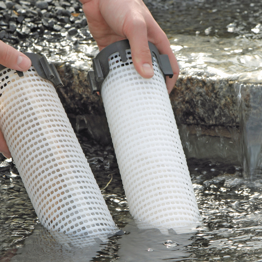 Das 2-Komponentensystem ist die ideale Ergänzung für jede Filteranlage. Die Behälter lassen sich direkt in die dafür vorgesehenen Aufnahmen des BioTec ScreenMatic (12 / 18 / 36), BioTec ScreenMatic² (40000 / 60000 / 90000 / 140000) sowie der Profi Clear Classic einstecken. Aber auch in jedem gut durchströmten Bereich können Sie die PhosLess Säulen einsetzen. Besonders clever: das Nachfüllpack