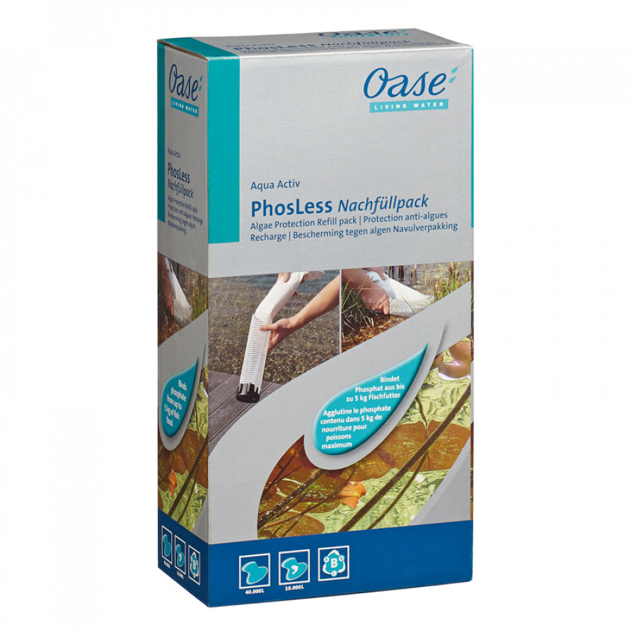 Das Produkt eignet sich zum Nachfüllen des PhosLess Aqua Activ von Oase. Das Mittel gegen Algen AquaActiv PhosLess ist eine Alternative zu unserem Algenschutz Pond-Vital: