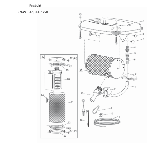 Auf dieser Ersatzteil-Übersichtsseiten listen wir Ihnen alle Ersatzteile, die für Ersatzteile für Oase AquaAir 250 mit der Artikelnummer: 57479 erhältlich sind, auf. Die Explosionszeichnungen zeigt Ihnen den Einbauort jedes einzelnen Ersatzteils. Vergleichen Sie dafür die Positionsnummer mit der Nummer im Bild des Ersatzteils. Die verwendete Stückzahl des Ersatzteils für Ersatzteile für Oase AquaAir 250, ist am Warenkorbbutton bereits für Sie vordefiniert.