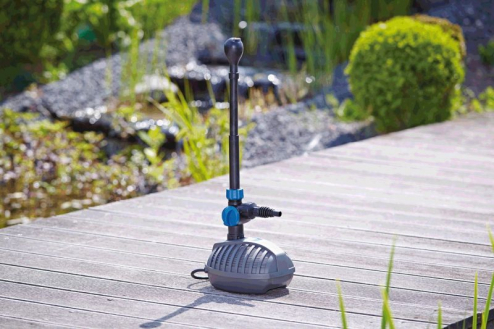 Das Wasserspielset Aquarius Fountain Set Classic 750 enthält eine kraftvolle Fontänenpumpe mit einer Förderleistung von maximal 720 Litern Wasser pro Stunde. Eine maximale Fontänenhöhe von 70 cm ist mit dieser Pumpe ein Kinderspiel. Trotz starker Leistung zeichnet sich die Pumpe durch ihren sparsamen, energieeffizienten Antrieb aus und sie überzeugt durch einfache Installation. Sie besitzt einen zweiten, separat zu regulierenden Ausgang für das parallele Betreiben von kleinen Bachläufen oder Wasserspeiern. Zur Ausstattung gehört eine Teleskoprohrverlängerung mit integriertem Schwenkgelenk. Mit diesem lässt sich die Fontäne individuell ausrichten. Im Set findet man außerdem drei hochwertige Fontänenaufsätze für verschiedenste Effekte.