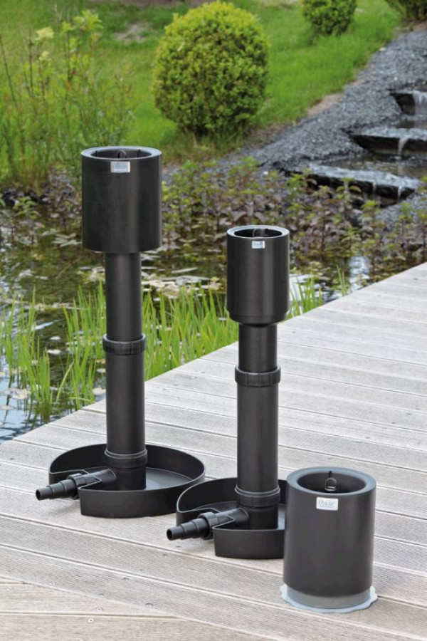 Der Oase AquaSkim 20 hält eine Wasseroberfläche von bis zu 20 m² sauber und ist eine ideale Ergänzung zu den AquaMax Eco Premium Modellen 4000-8000. Sein Skimmerkorb hat einen Durchmesser von 126 mm. Er lässt sich problemlos an die Teichtiefe durch das zweiteilige, stufenlos von 320 bis 800 mm höhenverstellbare Teleskoprohr anpassen. Der Skimmer gleicht Wasserstandsdifferenzen bis zu 100 mm aus. Das Filterkorbvolumen beträgt 1,4 L. Der Skimmer lässt Schmutzpartikel bis zu 10 mm Korngröße durch. Dank des 350 mm großen Fußes kann der AquaSkim 20 auf dem Teichboden besonders standfest mit Steinen fixiert werden. Der geringe Rohrdurchmesser von 80 mm sorgt zudem für weniger Luftinhalt und verhindert so das Aufschwimmen des Skimmers, der über einen Anschluss mit Universal-Stufenschlauchtülle von ¾" bis 1½" verfügt. Die Garantie beträgt 3 Jahre + 2 Jahre Anforderungsgarantie.