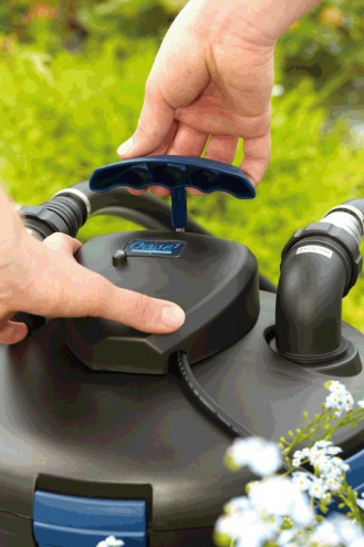 An den Filter, fertig, los: Das BioPress Set 6000 ist ideal für jeden Start Up - Teichbesitzer, denn das Komplettset inkl. 5 m Schlauch ist ganz einfach eingebaut und angeschlossen. Es zeichnet sich besonders durch seine effektive Filterleistung aus, denn die im Set enthaltene 40 Watt Filterpumpe, der Druckfilter und das darin integrierte 9 Watt UVC-Vorklärgerät sind perfekt aufeinander abgestimmt. Teiche bis zu 6 m³ (bei Fischbesatz bis zu 3 m³) erhalten garantiert klares Wasser, das sogar zu einem höher gelegenen Bachlauf befördert werden kann. Verschmutztes Wasser wird mit einer Leistung von 2500 l/h zum Filter transportiert. Seine einfache, patentierte Handhabung überzeugt, denn Ihre Hände bleiben sauber beim Reinigen der Filterschwämme, deren Verschmutzung sogar außen angezeigt wird. Und damit keiner den Filter sehen kann, lässt der sich fast komplett eingraben. Vertrauen Sie auf Oase-Qualität: Sie erhalten 2 Jahre Garantie plus eine Klarwassergarantie.