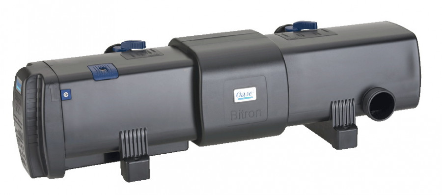 Das UVC-Vorklärgerät Oase Bitron 110 C ist geeignet für den Durchlauffilter Oase Biotec 5.1 bis 36. UVC-Licht verklumpt Grünalgen, die dadurch besser herausgefiltert werden können, und tötet krankheitserregende Bakterien ab. Für eine jederzeit vollwirksame UVC-Strahlung sorgt ein automatisches Reinigungssystem. Zusätzliche Funktionssicherheit gibt ein Kontrollfenster. Bei einer Leistungsaufnahme von 110 W können an der UVC-Röhre ohne Bypass 12.000 l Wasser pro Stunde vorbeiströmen. Der Durchfluss lässt sich individuell einstellen und regulieren. Das UVC-Vorklärgerät Oase Bitron 110 C gibt es komplett mit Universal-Stufenschlauchtülle von ¾" bis 2". Das Kabel ist 5 m lang. Eine Strömungsdüse optimiert die Anströmung des Reinigungsrotors. Die Nennspannung beträgt 230 V/50 Hz. Auf das UVC-Vorklärgerät Bitron 110 C gibt es 2 Jahre Garantie.