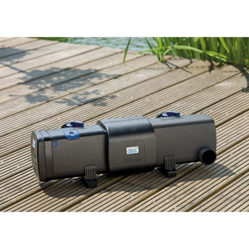 Das UVC-Vorklärgerät Oase Bitron C 55 W beseitigt Schwebealgen und reduziert schädliche Bakterien für gesundes und klares Wasser. Für eine jederzeit vollwirksame UVC-Strahlung sorgt ein automatisches Reinigungssystem. Zusätzliche Funktionssicherheit gibt ein Kontrollfenster. Schutz der Augen gewährleistet durch 100%ige, VDE geprüfte Sicherheit. Bei einer Leistungsaufnahme von 55 Watt können an der UVC-Röhre ohne Bypass 6.500 l/h vorbeiströmen. Der Durchfluss lässt sich individuell einstellen und regulieren. Das UVC-Vorklärgerät Oase Bitron C 55 W gibt es komplett mit Universal-Stufenschlauchtülle von ¾" (19 mm) bis 2" (51 mm). Das Kabel ist 5 m lang. Eine Strömungsdüse optimiert die Anströmung des Reinigungsrotors. Die Nennspannung beträgt 230 V/50 Hz. Optimal für den Anschluss an BioSmart 36000 und BioTec Screenmatic 12-18. Sie erhalten eine Garantie von 2 Jahren.