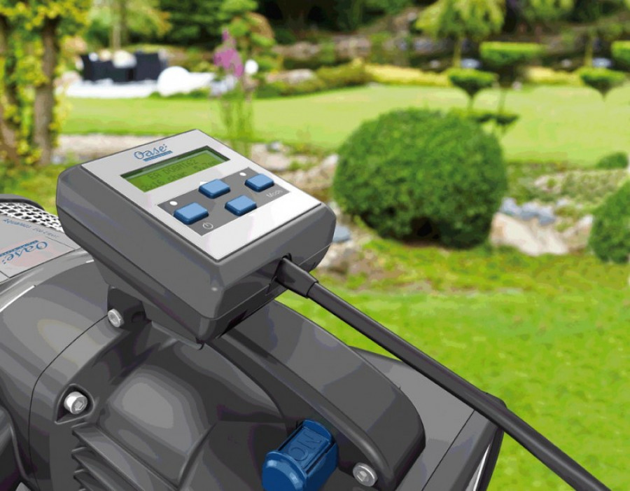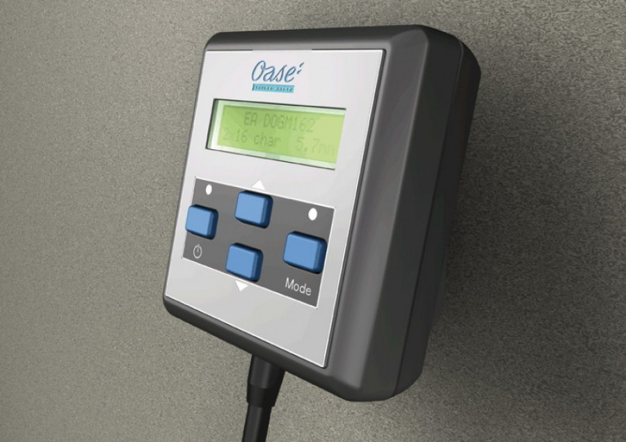 Mit dem cleveren Oase Eco Control Steuergerät lässt sich die Leistung aller entsprechend angeschlossenen Endgeräte abfragen und regulieren. Ganz nach Wunsch lässt sich zur bequemen Bedienung der Controller entweder direkt an der Pumpe, an einer Wand oder mit Erdspieß am Teichrand befestigen. Dank der 10 m langen, wasserdichten Kabelverbindung (IP68) zwischen ihm und der AquaMax Eco Expert Pumpe wird keine weitere Stromversorgung benötigt. Inklusive beleuchtetem Display