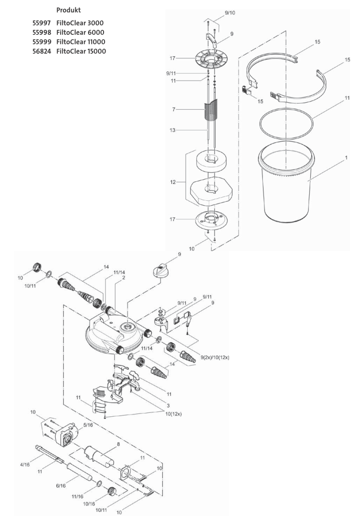 Auf dieser Ersatzteil-Übersichtsseiten listen wir Ihnen alle Ersatzteile, die für Ersatzteile für Oase FiltoClear 3000 mit der Artikelnummer: 55997 erhältlich sind, auf. Die Explosionszeichnungen zeigt Ihnen den Einbauort jedes einzelnen Ersatzteils. Vergleichen Sie dafür die Positionsnummer mit der Nummer im Bild des Ersatzteils. Die verwendete Stückzahl des Ersatzteils für Ersatzteile für Oase FiltoClear 3000, ist am Warenkorbbutton bereits für Sie vordefiniert.