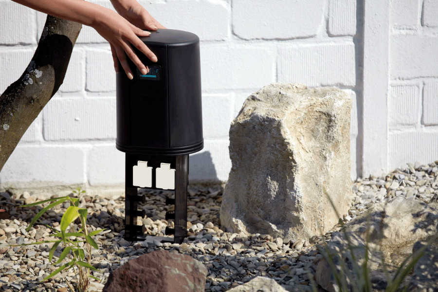 Die Gartensteckdose Oase InScenio FM-Master 3 mit Erdspieß, Abdeckung und Fernbedienung verfügt über vier 230 Volt -Steckdosen: 1 mit Permanentstrom, 2 ein-/ ausschaltbar und 1 ein-/ ausschalt- und zusätzlich dimmbar (Belastung max. 40-320 Watt). Die handliche Fernbedienung hat eine Reichweite von bis zu 80 m. Der FM-Master 3 ist spritzwassergeschützt und für den Ganzjahreseinsatz geeignet.