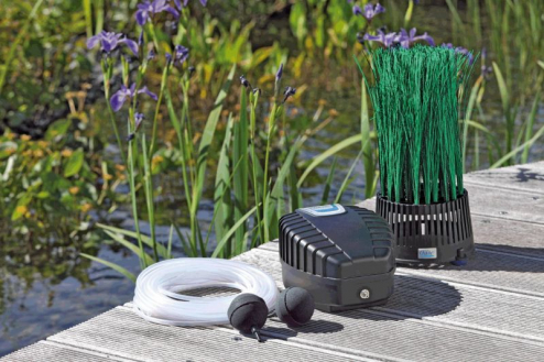 Das Oase OxyTex Set 500 besteht aus dem OxyTex 400 Luftausströmer und dem AquaOxy 500 Teichbelüfter: