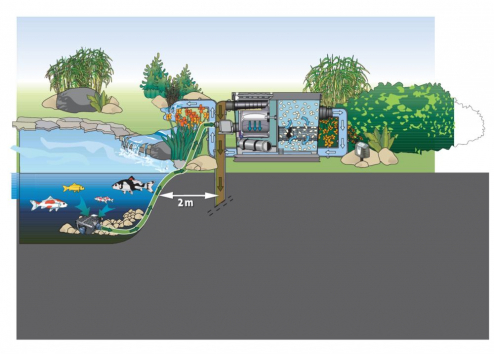 Höchste Ansprüche an die Filterleistung genauso wie an eine komfortable Bedienung stellen Besitzer kleinerer oder mittlerer Naturgewässer oder Schwimmteiche bis zu 260 m³. Insbesondere Koi-Liebhaber wollen Flora und Fauna bestens versorgt wissen. Die cleveren und kraftvollen Modulfiltersysteme von Oase kann jeder Teichbesitzer seinen Anforderungen entsprechend modular erweitern, so zum Beispiel mit einem Trommelfilter Modul, einem Moving Bed Modul oder einem Individual Modul, bestückt mit weiteren Filtermedien, UVC-Klärer oder Filterpumpe. Das System lässt sich sowohl im gepumpten Prinzip als auch mit dem dem Gravitationsprinzip betreiben. Dabei sind Durchflussmengen von 25.000 l/h beziehungsweise 33.000 l/h möglich. Ihren Anforderungen sind mit dem Oase Proficlear Premium System keine Grenzen gesetzt. Rufen Sie uns an oder besuchen Sie uns und planen Sie mit uns zusammen Ihr Filtersystem!