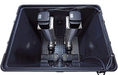 Die ProfiClear Pumpenkammer Compact/Classic ist Teil des ProfiClear-Modulfiltersystems und ist verwendbar als Gravitationsvariante oder für gepumpte Systeme (Zuleitung Gravitation). Sie sorgt für die richtige Positionierung der Filterspeisepumpe. So werden Druckverluste reduziert, Wartung und Überwinterung der Pumpe vereinfacht und bei Schwimmteichen eine normkonforme Aufstellung sichergestellt. Am Boden des Moduls befindet sich eine Absetzkammer. In der Absetzkammer gesammelter Schmutz wird über den Bodenablauf ausgeschwemmt. Die Pumpenkammer verfügt über zwei Eingänge passend zu ProfiClear Classic und ProfiClear Premium Compact. 2x DN110 Ausgänge erlauben die energiesparende Verwendung von bis zu 2 x Bitron Gravity UVC Geräten. Das 83 x 67 x 82 cm (L x B x H) große Pumpenkammer-Modul besteht aus hochwertigem Duroplast.