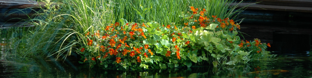 Eine Pflanzinsel ist im Sommer ein echter Blickfang im Garten. Speziell gezüchtete Repositionspflanzen produzieren in ihren Wurzeln Zitronensäure und entziehen dem Teichwasser Phosphate und Schadstoffe. Sie werden nahezu substratfrei gezüchtet und durchwurzeln die Insel- Matte ohne zusätzliche Erde. Das Wasser wird so weniger belastet. Die Wurzeln wachsen frei im Wasser, filtern es besser als Topfpflanzen am Teichrand und produzieren wichtigen Sauerstoff. Die Koi naschen von den überhängenden Blättern. Die Insel gibt den Fischen Sonnenschutz, Spielfläche und in den Wurzeln unter der Insel-Matte möglicherweise sogar einen Platz zum Ablaichen. Die Fische können sich außerdem vor Reihern verstecken. Sämtliche Repositionspflanzen sind insektenfreundliche Stauden, unterstützen die Natur und locken Schmetterlinge und Bienen an.