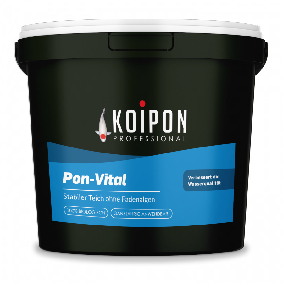 Das 100 % biologische Pon-Vital sorgt für fadenalgenfreie Teiche. Fadenalgen entziehen dem Teich Sauerstoff. Zusätzlich können sich Kot- und Futterreste an ihnen festsetzen. Mit natürlichen Inhaltsstoffen fördert Pon-Vital die Wasserqualität und reduziert Schadstoffe durch die Vermehrung von Mikroorganismen. Der Sauerstoffgehalt des Teiches wird leicht angehoben und der pH-Wert stabilisiert sich. Fadenalgen werden so nachhaltig verdrängt. Pon-Vital fördert zudem die Gesundheit der Fische, regt ihren Appetit an und verbessert ihre Farbintensität.