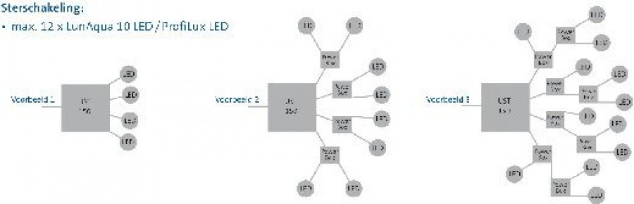 Die PowerBox 12 V AC /01 ist die ideale Lösung, um bis zu 12 Scheinwerfer LunAqua 10 LED an einen UST 150 / 01 anzuschließen. Mit dieser praktischen Box können Sie bis zu 8 Leuchten in einer Reihe betreiben und somit eine beeindruckende Beleuchtung unter Wasser erzeugen.