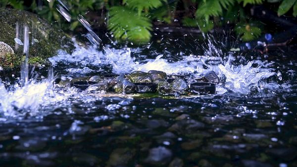 Damit das Wasserspiel mit relativ sauberem Teichwasser gespeist wird, sollte eine entsprechende Pumpe ebenfalls im Flachwasserbereich angesiedelt werden – und nicht zu tief oder am Grund. Auch muss gewährleistet sein, dass man zwecks Reinigung schnell Zugriff auf die Pumpe bekommt.