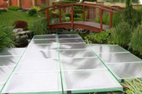 Der Teich verliert im Winter über die Wasseroberfläche wärme. Diesem Wärmeverlust können Sie mit einer geeigneten Teichabdeckung effektiv entgegenwirken. Sie benötigen weniger Energie, um den Teich zu heizen und Ihre Koi können besser und in Ruhe überwintern.
