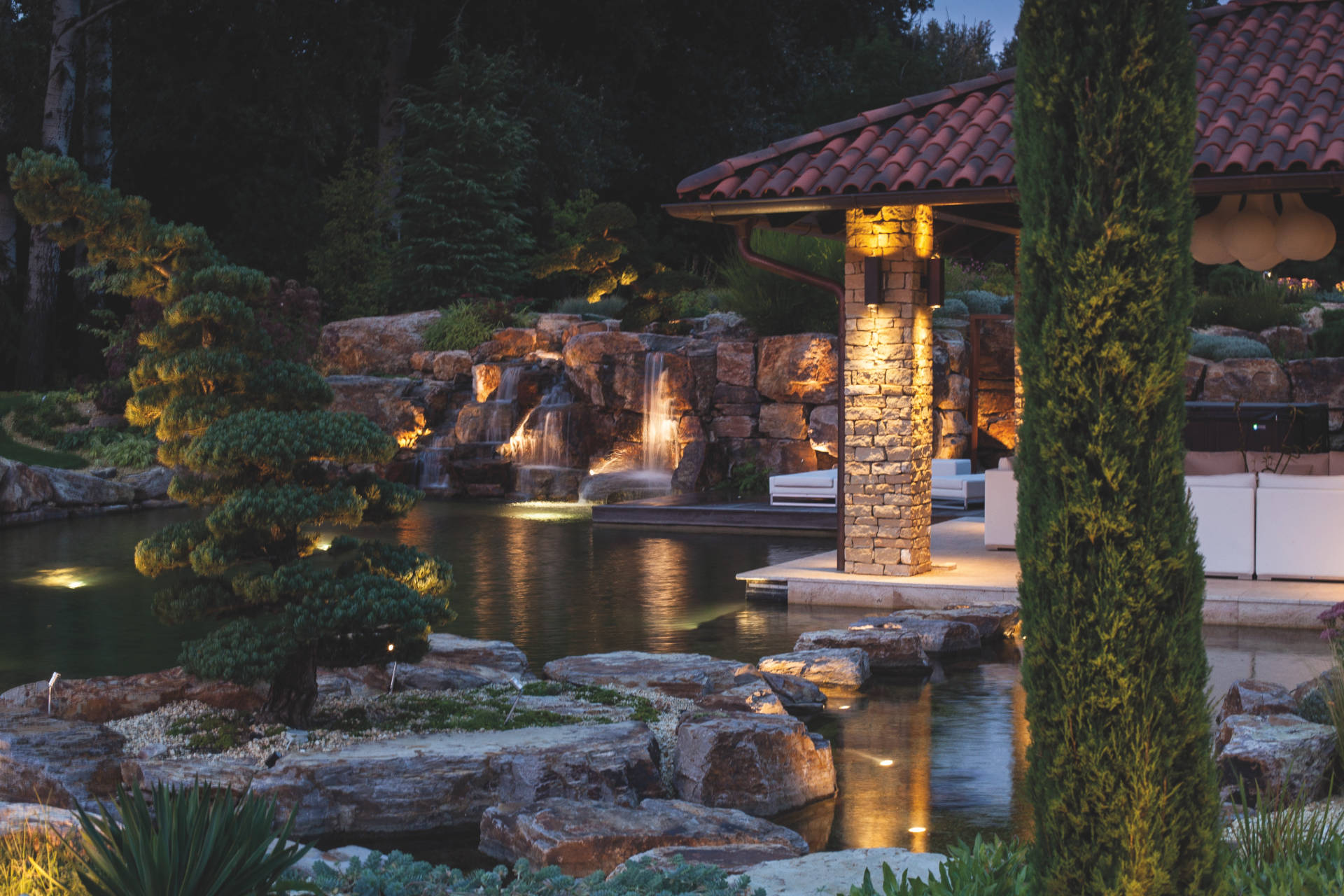 Wasserspiele und Bachläufe müssen nicht 24 Stunden am Tag in Betrieb sein. Nutzen Sie diese nur nach Bedarf und schalten Sie die Geräte aus, wenn Sie nicht am Teich sind. So können Sie jede Menge Energie sparen. Das geht ganz einfach mittels einer steuerbaren Gartensteckdose (Fernbedienung oder App).