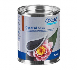 • Rauhen Sie die Folie leicht mit Schleifpapier an und tragen Sie den OaseFol Primer auf und lassen sie ihn trocknen, bis er keine Fäden mehr zieht.